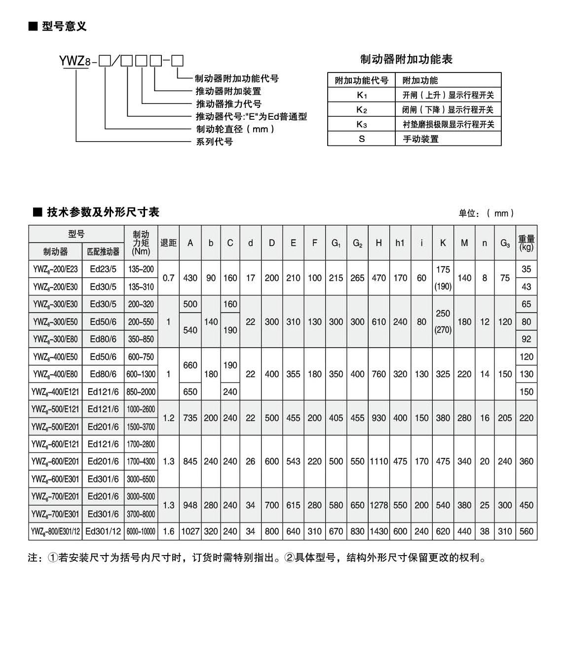 - 型號YWZ8,YWP系列